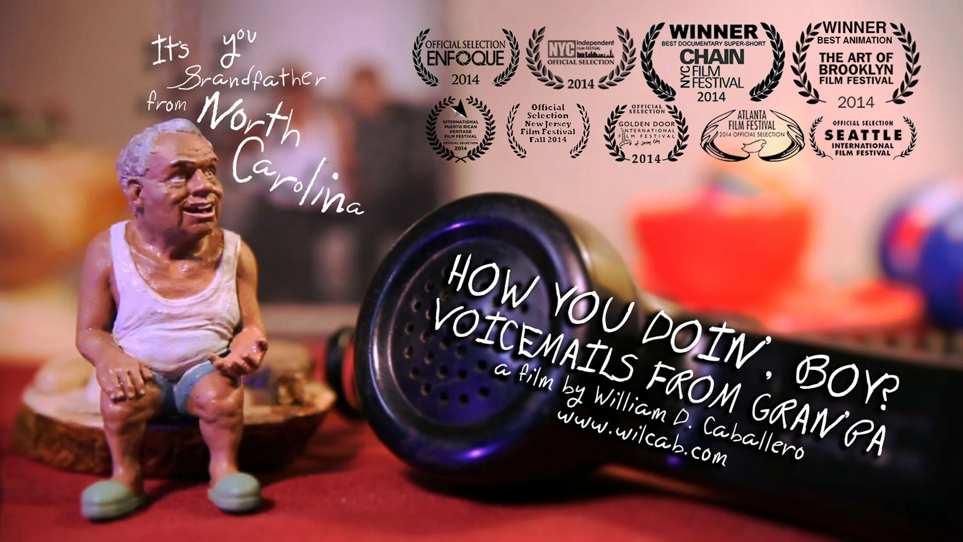 Back in late 2012, I knew I wanted to make a short film based on a hilarious archive of voicemail messages left by my Puerto Rican Grandfather throughout the years. I wanted it to look and feel different than most independent films I had seen, and knew that I wanted to challenge myself in ways never thought of before. So in love was I with the idea, that I couldn't sleep at night. After finding the perfect creative team (Chang Kim, Seth Burney, Dana Dillehunt, Kate Keisel-Caballero, & Chris Cookson), I dove headfirst creating and directing a film featuring 3D modeled/printed miniatures of my grandfather. We finished the short film, called HOW YOU DOIN', BOY? VOICEMAILS FROM GRAN'PA in September 2013, and it's been in over 15 film festivals thus far.